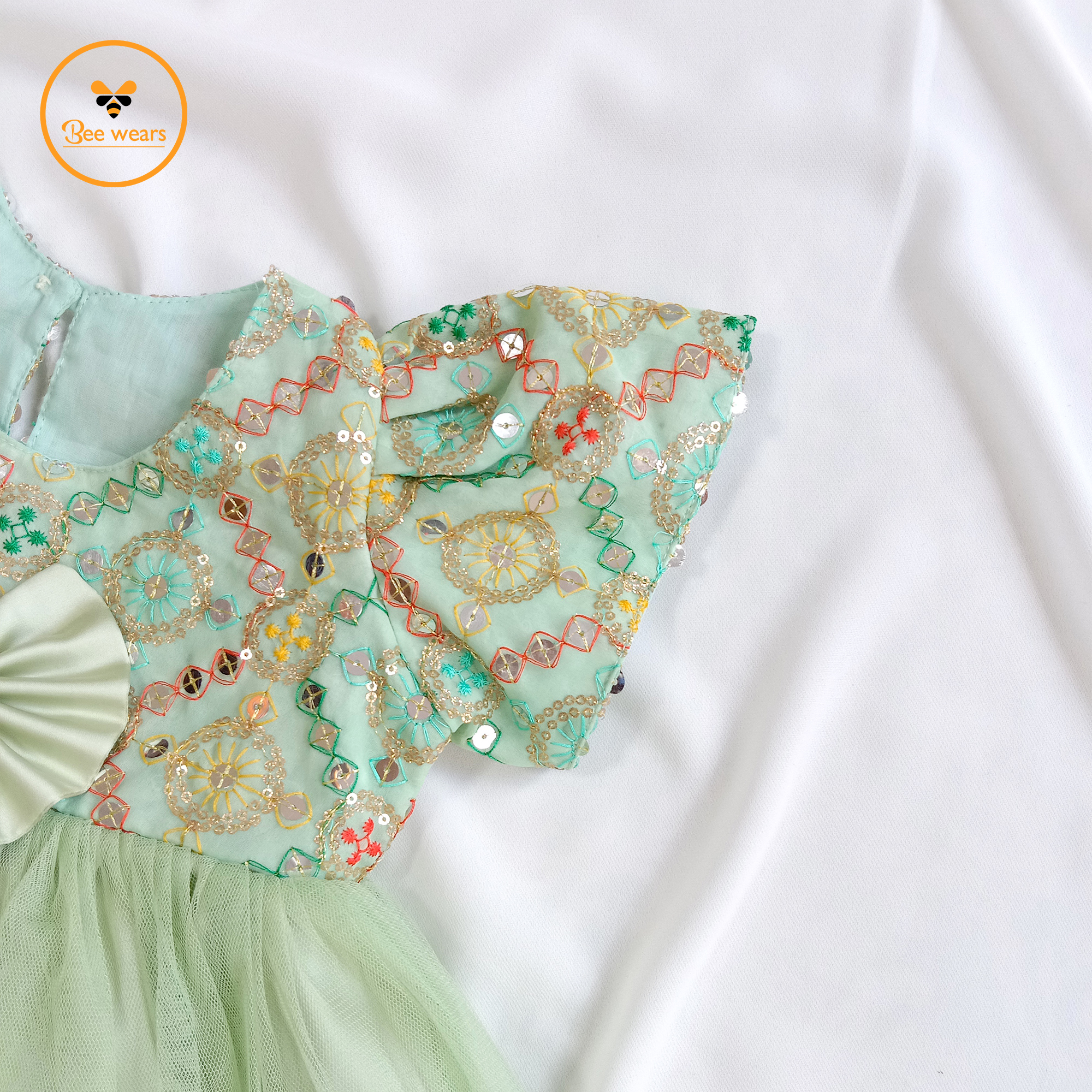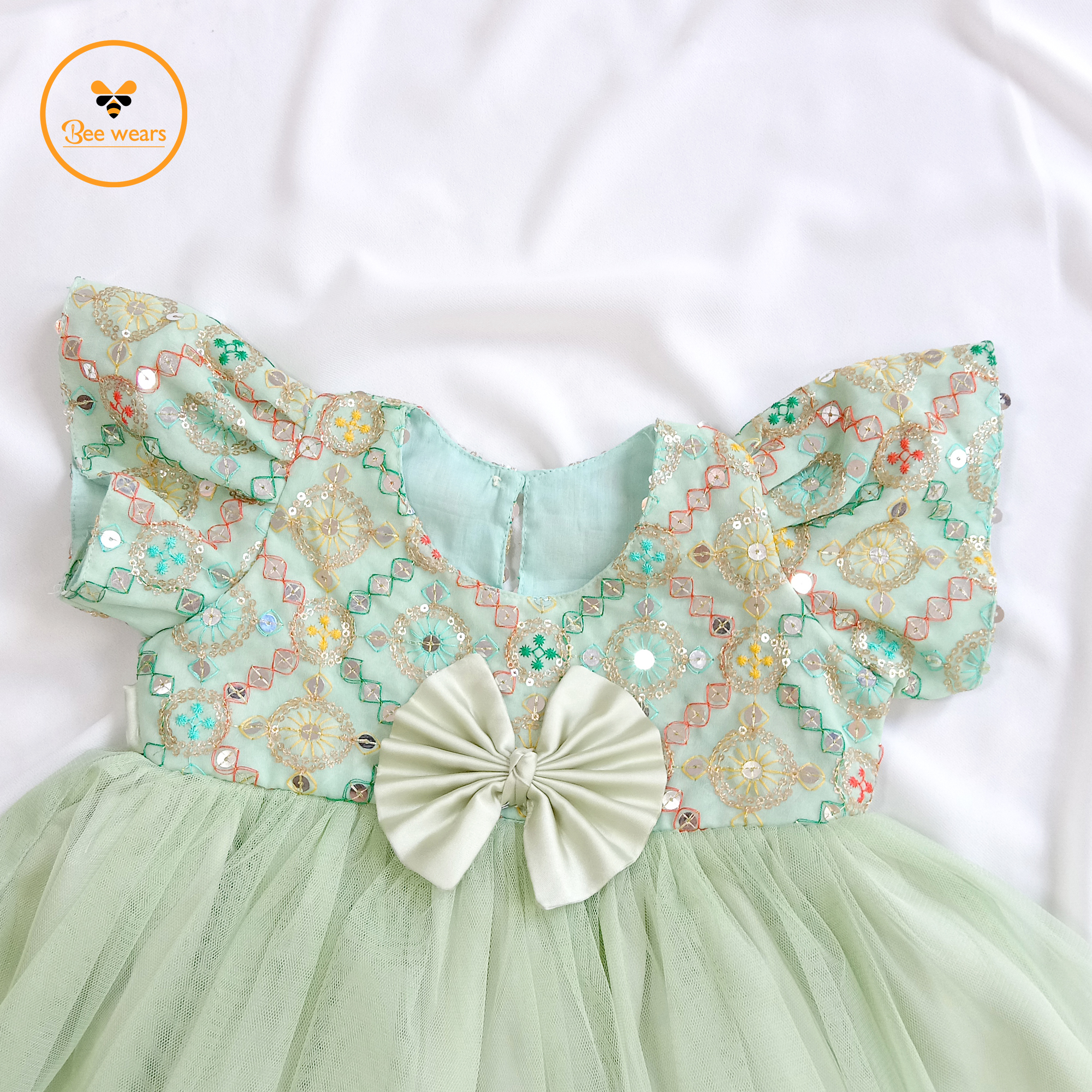 Adorn your baby girl in this enchanting party dress – a perfect blend of comfort and style. Delicate details and soft fabric make it ideal for birthdays and special occasions. Elevate her look and create precious memories. Shop now for the perfect celebration attire!